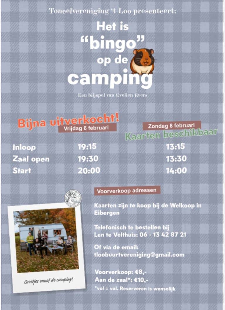Laatste kaarten voor ’t is bingo op de camping van Toneelvereniging ’t Loo