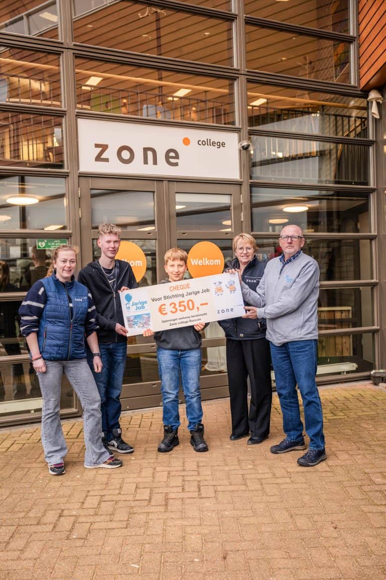 Zone.college Borculo overhandigt cheque aan Stichting Jarige Job na succesvolle kerstmarkt