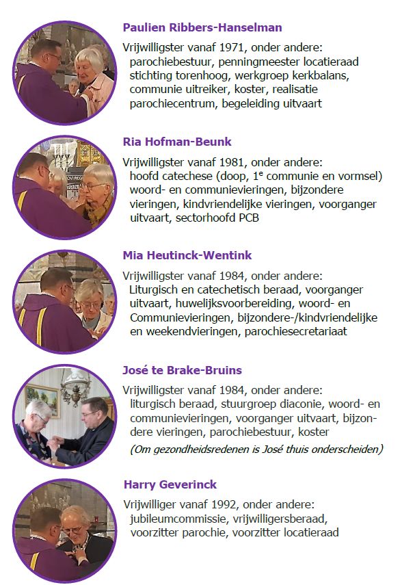 BELTRUM – In Beltrum zijn onlangs vijf parochianen onderscheiden met de Willibrordonderscheiding van het Aartsbisdom