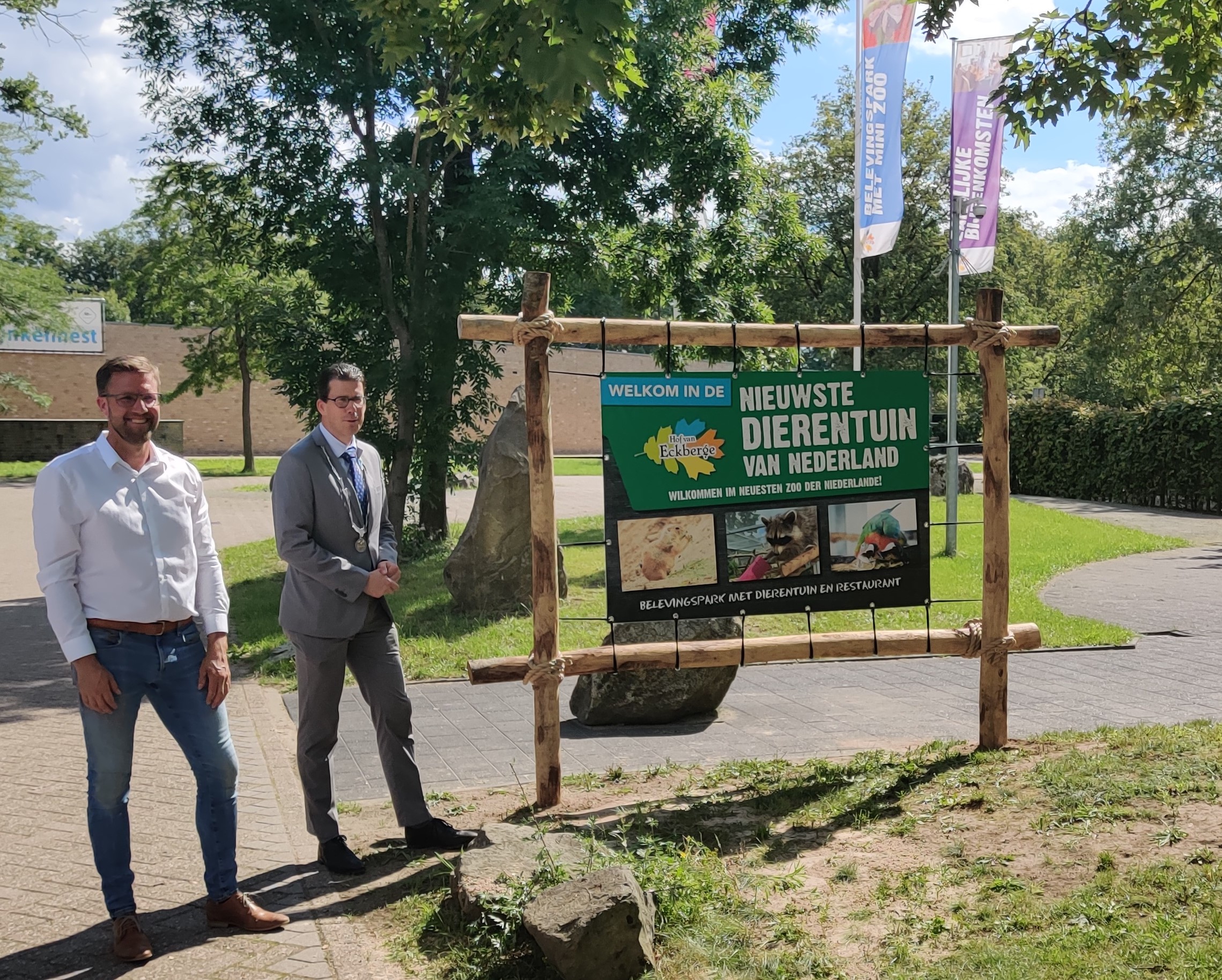 EIBERGEN – Berkelland heeft sinds 22 april 2020 een officiele dierentuin, de 67e in Nederland. Burgemeester Joost van Oostrum, zelf afgestudeerd bioloog, opende vanmiddag de dierentuin bij Hof van Eckberge in Eibergen. Het 25.000m2 grote belevingspark met mini ZOO en restaurant opende in 2012 haar deuren. ‘Het is altijd een wens geweest om door te groeien naar een officiële dierentuin’, vertelt eigenaar Maarten Reimes. ‘Door uitbreiding van het aantal dieren en diersoorten is het verplicht om deze status aan te vragen bij de overheid. Aan alle strenge regels zoals eisen aan verblijven, dierenwelzijn, veterinaire- en voedingsprotocollen en educatie aan bezoekers moet worden voldaan. Een visitatiecommissie van het RVO bezocht Hof van Eckberge en gaf het positieve besluit.