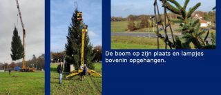 BERKELLAND – December nadert, de maand dat jaarlijks de grote kerstboom van de actie ‘Sterren Stralen’ van Rotaryclub Neede weer verschijnt. Op het kruispunt Neede-Eibergen-Haaksbergen bij het voormalige danspaleis aan de ‘oude N18’. Afgelopen zaterdag was dat weer het geval. Dit jaar werd opnieuw de hulp van de media ingeroepen voor een geschikte boom. Daar kwamen, zoals altijd, veel reacties op. Met als resultaat dat zaterdag een mooie spar bij de familie Hinnen in Neede uit de tuin werd gezaagd en getransporteerd naar de Sterren Stralen plek, waar deze met een hoogwerker op zijn plaats werd gezet. De actie Sterren Stralen trekt al jaren, de boom van Sterren Stralen is dit jaar voor de 17de keer opgetuigd, belangstelling met de verlichte boom. De opbrengst van de huis aan huis verkoop van de ‘Sterren Stralen kerstwens kaarten’ is voor ’kinderen in de knel’ in de regio.