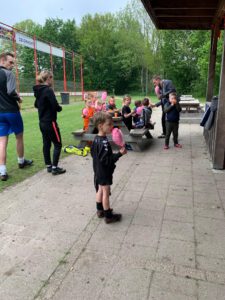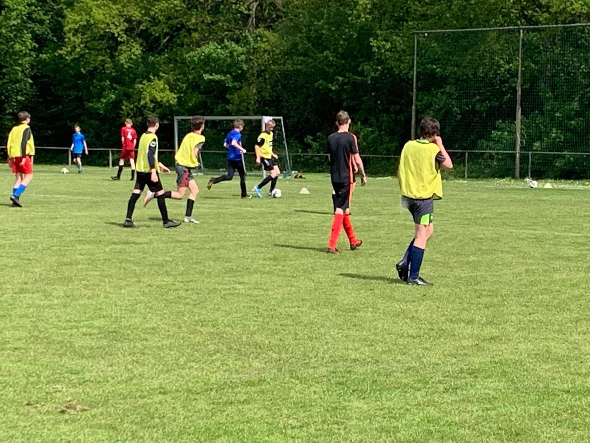 De junioren hebben in de middag na een goede warming-up diverse partijtjes gespeeld met wisselende team samenstellingen. Ook zij konden na afloop genieten van fris en frikandellen.