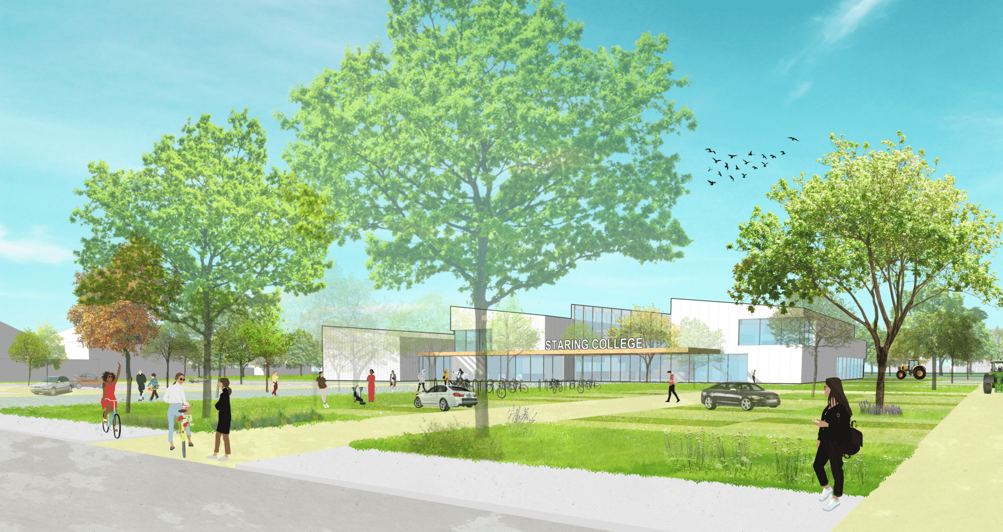 Het nieuwe schoolgebouw moet de twee huidige locaties van het Staring College samenvoegen. Het nieuwe pand wordt 4140 m2 groot. De nieuwe locatie is brede instroom (jaar 1+2) en bovenbouw vmbo basis/ kader/ mavo+ (=gl). Naast de algemene vakken worden er ook praktijkvakken gegeven. Emiel vertelt: “Het Staring College werkt volgens het ‘zichtbaar leren’-principe, waarbij het eigenaarschap van het leren zoveel mogelijk bij de leerlingen ligt.” Ook koppelt de school praktijkvakken aan het lokale bedrijfsleven. “Bedrijven uit de omgeving geven op het Staring College praktijklessen, waardoor school en bedrijf een aanvulling voor elkaar zijn.”