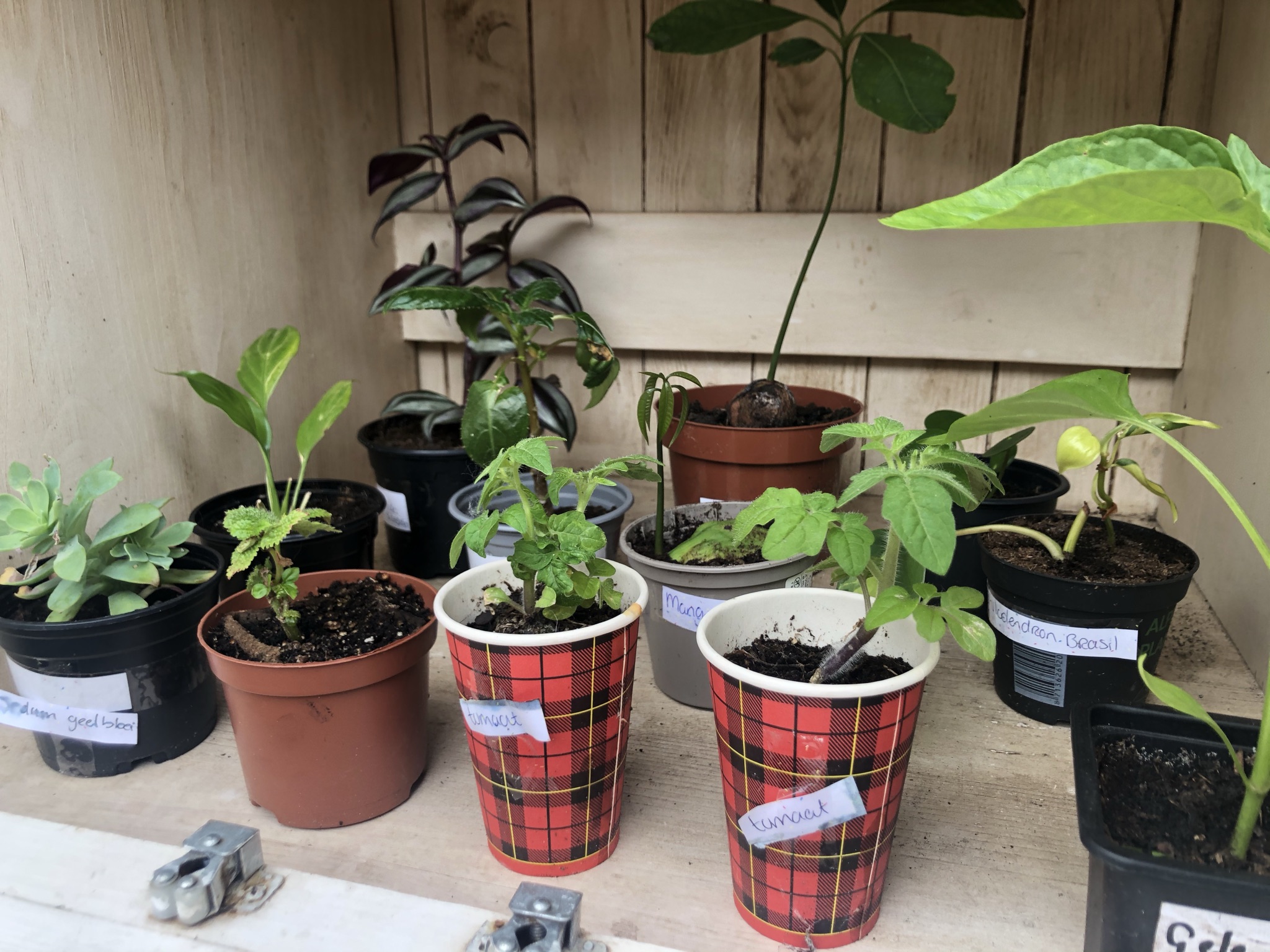 In de kast staan ook plastic plantenbakjes, mocht je plantjes willen opkweken en heb je geen potjes, ben je welkom om er wat op te halen, zo recyclen we en zijn we milieu bewust bezig.