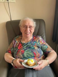 BELTRUM – Dinsdag heeft de organisatie van de kermis in Voor-Beltrum de bewoners van de Hassinkhof in Beltrum en de bewoners van de Molenberg in Groenlo getrakteerd op een taartje vanwege haar 75 jarig jubileum. “Hoe leuk is het dan dat je deze foto krijgt van een genietende Mevrouw Bomers, oud inwoonster van Voor Beltrum en nog altijd een trouw lid. Daar doen we het toch voor”. Laat de organisatie weten.