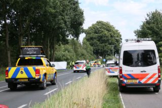 NEEDE – Op de N315 in Neede heeft zondagmiddag een ernstig ongeval plaats gevonden. Bij het ongeval waren een fietser (een 73 jarige man uit Neede) en een motorrijder (een 22 jarige man uit Haaksbergen) betrokken. Deze kwamen ter hoogte van de Bergweg met elkaar in botsing. De motorrijder uit Haaksbergen is ter plaatse overleden. De fietser uit Neede is zwaargewond afgevoerd naar het ziekenhuis. De politie doet onderzoek naar de toedracht van het ongeval de N315 is afgesloten. Foto: 112 Regionews