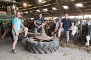 Terwijl de koeien rustig staan te vreten op stal vertellen de kameraden over het ontstaan van de eiwitbokaal. Arjan: “Ronnie en ik zijn van jongs af aan bevriend en spreken geregeld over het reilen en zeilen op onze melkveebedrijven. We dachten dat we hoge eiwitgehaltes in de melk realiseerden, maar nadat Ronnie in oktober 2016 met Martijn naar een vergadering van FrieslandCampina was geweest, appte hij me dat Martijn melk met 4% eiwit aflevert. Dit maakte ons nieuwsgierig naar zijn aanpak, dus zo is de groepsapp ontstaan.” Ronnie vult aan: “En later dat jaar, tijdens Martijns 40e verjaardag, hebben we hem de eiwitbokaal cadeau gedaan.“