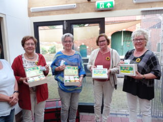 Ondanks de coronatijd of misschien wel dankzij mocht De Zonnebloem afdeling Eibergen een zestal nieuwe vrijwilligsters begroeten. En vanzelfsprekend kregen ze een warm welkom tijdens dit feestelijke vrijwilligersuitje. Speciaal ter gelegenheid van het 55 jarig Zonnebloem jubileum kregen zij een, door Frieda van Enk ontworpen, ’kuierbox’ uitgereikt. Zoals een timmerman, zijn zaag en hamer meeneemt, zo kan de vrijwilligster gebruik maken van dit instrument. Bij het bezoekwerk, het belangrijkste werk van De Zonnebloem is een fijn gesprek uitermate belangrijk. De ‘kuierbox’ oftewel kletsbox, is gevuld met maar liefst 210 vragen in de categorie: vragen over vroeger, algemeen vragen, levensvragen, dilemma’s en vragen in het Achterhoeks. Dit hulpmiddel, een variant van de reeds bestaande kletspot en pickwick theezakjes, is bedoeld om tot mooie, gezellige en waardevolle gesprekken te komen tussen gast en vrijwilliger. Uiteraard kregen alle vrijwilligers zo’n speciaal ‘KUIERBOX’ uitgereikt. Want naast allerlei activiteiten, die hopelijk straks weer kunnen plaats vinden, is het bezoekwerk de basis van het Zonnebloem vrijwilligerswerk.