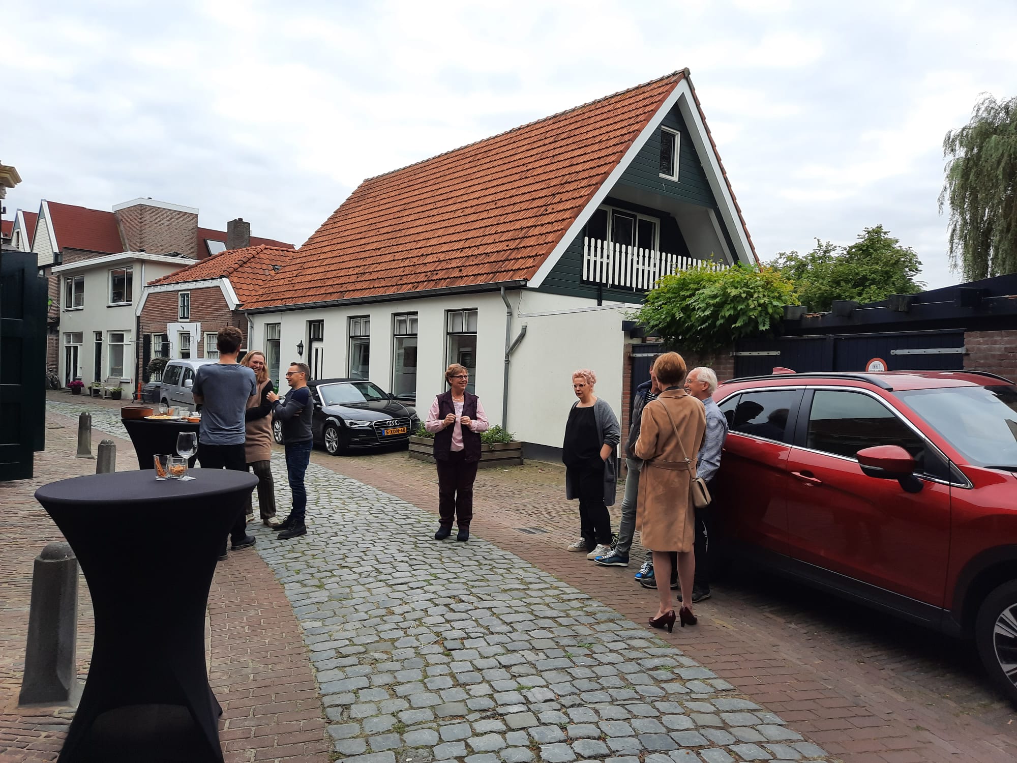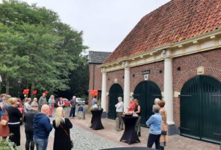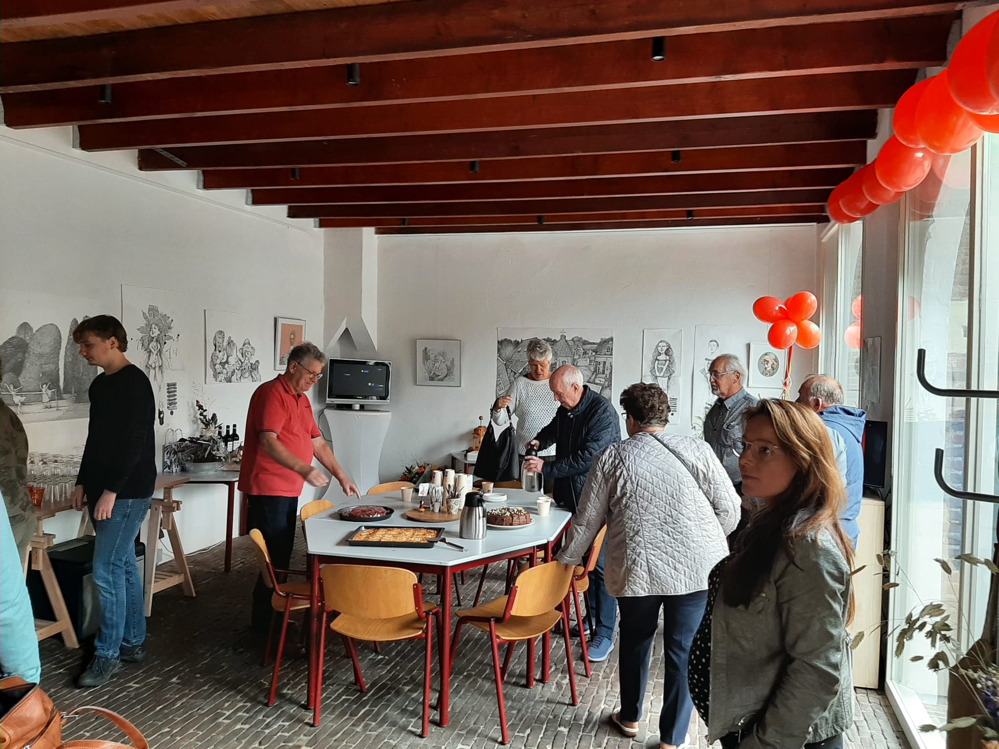 De grote houten deuren werden geopend, waarna de bezoekers naar binnen konden. Er was een theebar en koffie met diverse door familie en vrienden zelf gemaakte taarten, waarna het later nog lang gezellig bleef met drankjes en hapjes.