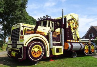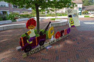 Muziekvereniging De Eendracht zet een nieuwe papiercontainer neer bij het Kulturhus