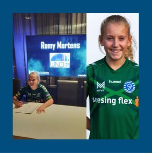 BERKELLAND – Afgelopen week heeft UNO’21 JO13-1 speelster Romy Martens haar eerste overeenkomst ondertekent bij MVVA. Zij volgt daarmee UNO’21 JO15-1 speelster Linde Geltink, die al enige tijd geleden haar overeenkomst tekende bij MVVA.