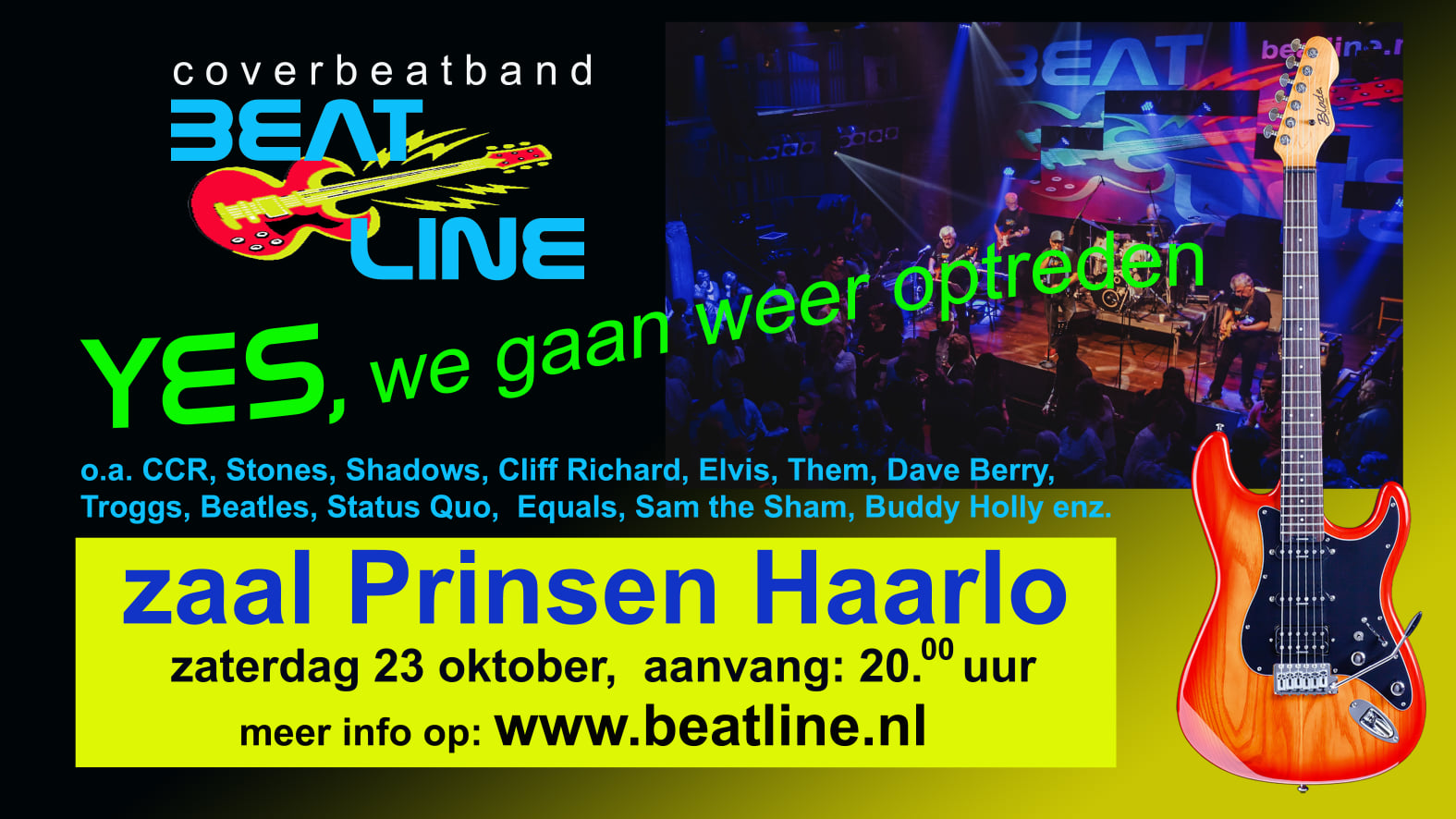 De kaarten zijn te reserveren via tel: 0545 261 232 (zaal) of via de website www.beatline.nl .