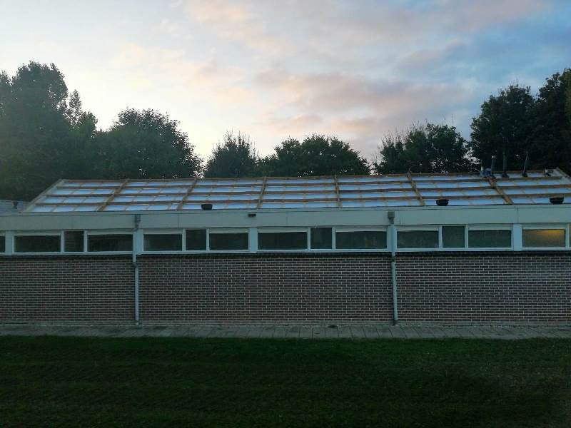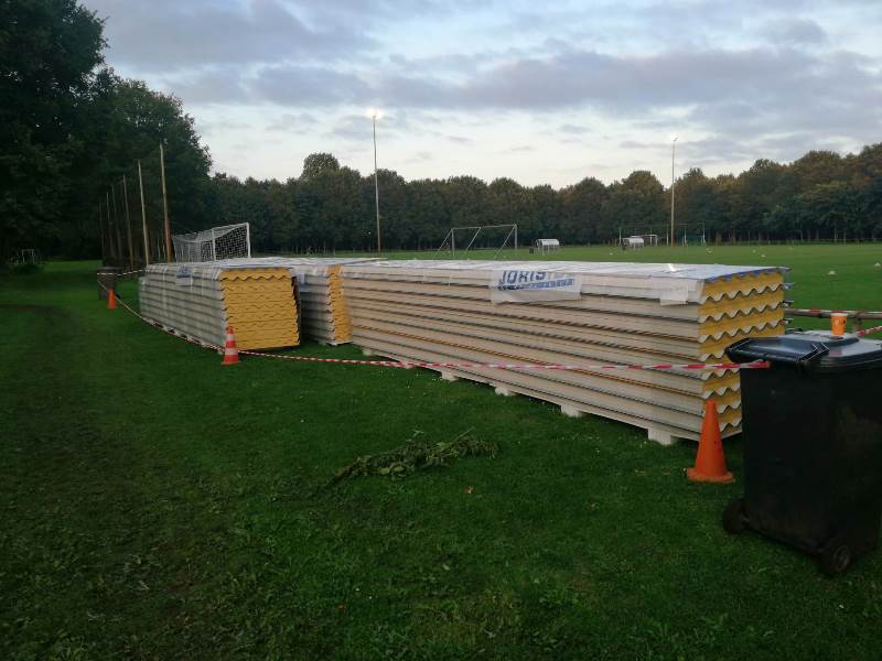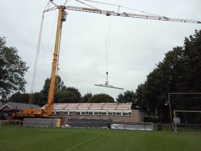 De eerste week van september is gestart met het vervangen van de dakplaten van de kleedkamers. Onderdeel van het project is namelijk ook het vervangen deze asbest dakplaten door goed geïsoleerde dakplaten, waarmee veel warmteverlies wordt voorkomen. “Onze nieuwe hoofdsponsor Duits Solar plaatst op dit moment 62 zonnepanelen op het nieuwe dak van de kleedkamers. Afgelopen jaar heeft de klusgroep al verschillende werkzaamheden verricht om ervoor te zorgen dat het verbruik van gas en elektriciteit verminderd kan worden. Zo is bijvoorbeeld een slimme meter geïnstalleerd en zijn leidingen extra geïsoleerd om het warmteverlies te beperken. Tevens heeft de klusgroep alle verlichting in de kantine en kleedkamers vervangen door LED-lampen. Maar er staan meer werkzaamheden op de planning: Liander zal een volledig nieuwe meterkast installeren, de radiatoren in de kleedkamers zullen worden voorzien van thermostaatkranen en voor de beregening van de velden zal een veel zuinigers pomp worden geinstalleerd. Wanneer dit alles is uitgevoerd, zijn we in staat om ons energieverbruik te monitoren en – waar nodig – aan te passen. Het uiteindelijke doel van het project, is dat Reünie zelf kan voorzien in haar energiebehoefte. Dit project is mede tot stand gekomen door bijdragen van onder meer Stichting Fonds 2013, Fonds Stichting 1819, Stichting Fonds voormalig Mortuarium Borculo en de Supportsvereniging van v.v. Reünie. Mocht je mee willen werken aan het verduurzamen van ons sportpark, hulp kunnen we altijd gebruiken! Stuur een e-mail naar [email protected]”. Zo laat de club weten.