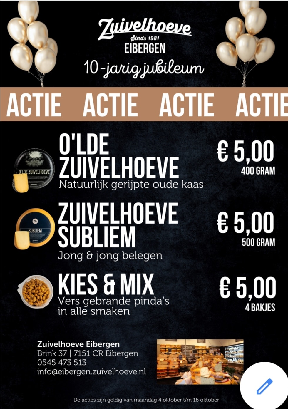EIBERGEN – De komende twee weken is het feest bij Zuivelhoeve Eibergen. “Vandaag, 4 oktober, is het 10 jaar geleden dat ik de winkel overnam”. Legt Bianca Leppink uit.