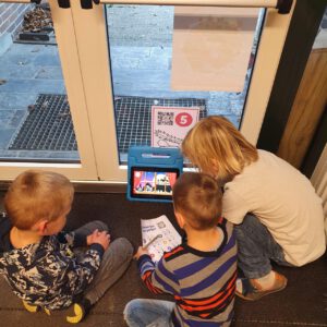 NOORDIJK – Waar we ons in het dagelijks leven druk kunnen maken of het nu terecht is of niet dat we op veel plaatsten een QR-code moeten laten zien, hebben de kinderen van de Tormijnschool uit groep 1-2-3 ontdekt dat een QR-code ook heel leuk kan zijn. Als opening van het thema Sinterklaas hebben zij een speurtocht gedaan samen met het ‘gluurpietje’.