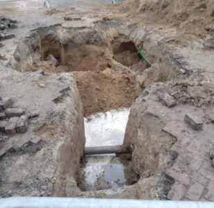 BORCULO – Een grote waterlekkage in Borculo houdt de gemoederen flink bezig. Behalve dat men de oorzaak na dagen zoeken nog altijd niet heeft gevonden is er ook een oude duiker bloot komen te liggen.