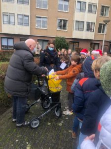 Helaas mogen we dit jaar niet naar binnen om iedereen persoonlijk te groeten. Maar dat heeft de leerlingen niet weerhouden! De groepen 5 en 6 hebben eerst buiten kerstliedjes gezongen. Dit brengt de nodige gezelligheid met zich mee. Vervolgens worden de kerstattenties overhandigd. En dit wordt wederom enorm gewaardeerd, want niet veel later ontvangen we een lieve bedankbrief.
