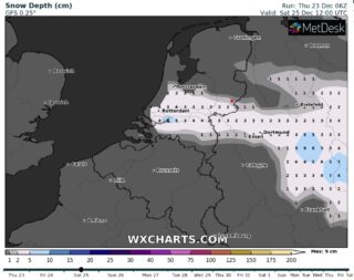 BERKELLAND – De weersituatie met de kerstdagen begint langzamerhand wat duidelijker te worden. De warmte en de (extreme) koude zijn uit de weermodellen verdwenen en zoals het er nu uitziet vindt de strijd tussen koude en warme lucht inderdaad net boven Nederland plaats. En dat is meestal een garantie voor kwakkelweer. De verschillen tussen het zuiden en het noorden kunnen daarbij groot zijn. In het midden en dus ook in de Achterhoek kan het dus letterlijk (in de nacht) vriezen en (overdag) dooien. Op eerste kerstdag zou er wellicht wat sneeuw kunnen vallen met misschien zelfs een paar cm dat blijft liggen.