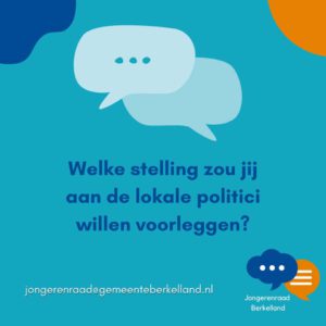 BERKELLAND – Op 14, 15 en 16 maart zijn er weer gemeenteraadsverkiezingen. Welke onderwerpen vinden jongeren belangrijk en welke vragen moeten er nou echt gesteld worden aan de nieuwe kandidaten. “Wij van je Jongerenraad Berkelland leggen het de 8 partijen voor zodat de Berkellandse jongeren een goed beeld kan krijgen wat al die partijen nou belangrijk vinden”. Zegt Jelle Kleinhesselink, die de jongeren oproept om met stellingen te komen. “Stuur ons een mail: [email protected]”.