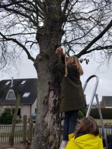 NEEDE – Elk jaar wordt in het laatste weekend van januari de Nationale Tuinvogeltelling gehouden, georganiseerd door Vogelbescherming Nederland. Ook scholen kunnen hieraan meedoen. De leerlingen van groep 8 van Obs De Hofmaat hadden zich al enige weken voorbereid. In de klas werden vetbollen gemaakt; zaad en vloeibaar vet in een bekertje, dat vervolgens even hard laten worden in de koelkast, om het de volgende dag op te kunnen hangen in de eigen tuin. Ook hebben ze pinda’s geregen die in de bomen op het schoolplein werden gehangen.