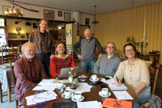 Foto: Leden van de projectgroep Poëziefestival Gelselaar met het bestuur van de gastvrije Stichting Portfolio. Van links naar rechts Jacobus Trijsburg, Gerrit Klaassen, Sander Grootendorst, Arend Heideman, Jaap Nijstad en Jopie Beumkes.