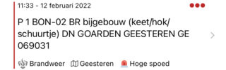 GEESTEREN – De brandweer is zaterdagmorgen even na half twaalf uitgerukt voor een brand aan D’n Goarden in Geesteren. De melding gaf aan dat het ging om een brand in een bijgebouw(schuur/hok). Er was al een flinke rookontwikkeling ontstaan. De brandweer was kort na de melding ter plaatse waardoor de brand vrij snel geblust was en erger werd voorkomen.