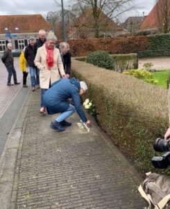 GEESTEREN – Woensdagmiddag zijn er zes nieuwe struikelstenen gelegd voor de familie Meijers uit Geesteren. Dit is een initiatief van stichting Vrijheidsbos in samenwerking met de synagoge Borculo en OBS De Keikamp. “Het was een mooie en indrukwekkende bijeenkomst, waarbij leerlingen van groep 7 en 8 een centrale rol hadden”. Zegt Jolanda Luimers, een van de initiatiefnemers. “Er lagen al vier struikelstenen, maar bij het maken van het boekje voor de oorlogsslachtoffers van Geesteren, bleek dat hier fouten op staan. Nu hebben Bernard, Eva, Manuel, Sofia en ook Philip Levie en Henri Meijers een nieuw struikelsteentje”.