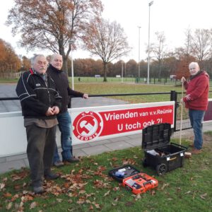 BORCULO – Tijdens de algemene jaarvergadering van de vereniging „Vrienden van Reünie“ is o.a. besloten aan de „Woensdagochtend-ploeg“, die elke woensdagochtend diverse hand- en spandiensten voor v.v. Reünie verrichten op Sportpark De Wildbaan, een bedrag van €1000,- toe te kennen voor de aanschaf van nieuw gereedschap. Op de door Jaime Lebbink gemaakte foto’s, zien we een gedeelte van het aangeschafte gereedschap. “De vereniging „Vrienden van Reünie“ wenst de woensdagochtendploeg veel plezier bij het gebruik van dit nieuwe gereedschap!”.