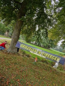 EIBERGEN – Al vanaf februari is men met een enthousiaste groep bezig met de organisatie van het Halloweekend in Eibergen. “Een divers weekend waar voor jong en oud wat te beleven is en waarbij wij ook proberen om voor de jeugd wat te organiseren”. Zo zegt de organisatie. “Juist ook deze doelgroep, omdat er vaak word aangegeven dat er zo weinig te doen is voor ze..Speciaal voor hen is er komende editie de Horrortocht en de Freak Night met Bram Konings. Jammer dat een deel van deze doelgroep het dan niet kan laten om met de handen van onze spullen af te blijven . Het spandoek heeft nog geen 3 dagen kunnen hangen en is door een buurtbewoner met diverse brandgaten erin aangetroffen….We gaan een nieuw plekje zoeken en hopelijk blijft het spandoek nu wel hangen!”.