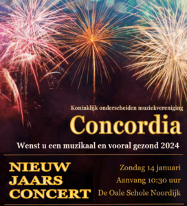 NOORDIJK – Als begin van het nieuwe jaar is er weer het traditionele nieuwjaarsconcert van muziekvereniging Concordia Noordijk. Het orkest en de drumband zal een gevarieerd programma ten gehore brengen. De muziek bestaat namelijk uit een mooie variatie van klassieke en moderne muziekstukken voor een breed publiek. Het concert zal zondag 14 januari plaatsvinden in de Oale schole in Noordijk, aanvang om 10:30 en de toegang is gratis.