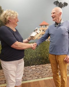 NEEDE – Jan Nijland is de winnaar geworden van de loterij tijdens de VVV Neede fietstocht van 7 juli. Iets later dan de bedoeling was, krijgt Jan Nijland de prijs uitgereikt door Klaske Koster van de VVV Neede. De 92-jarige Jan heeft de tocht met veel plezier gefietst en was zeer verrast dat hij het winnende lootje had.