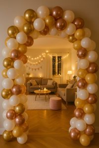 En natuurlijk: ballonnen! Ze zijn dé sfeermakers van elk housewarming feest organiseren. Kies kleuren die bij je thema passen, zoals champagne, zand of goud voor een chique look, of pastel- en natuurtinten voor een zachte uitstraling.