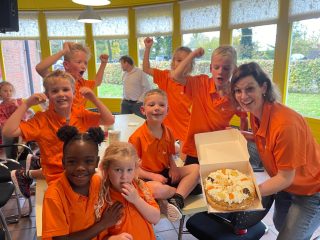 Bij de jongste categorie, groep 3, kleurde het veld oranje: de teams van de Willibrordusschool maakten er een onderlinge finale van. Uiteindelijk pakte team 2 de winst met een overtuigende 3-1 zege. Na afloop kregen alle deelnemers een welverdiend vaantje en een uitnodiging om eens mee te trainen bij HV Blauw-Wit. “Want we hebben al hoop handbaltalent gezien!”. Zo klonk het.
