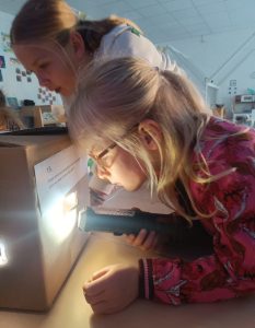 GELSELAAR – Op de G.A. van der Lugtschool in Gelselaar werd de Kinderboekenweek gevierd met een flinke dosis spanning, creativiteit en leesplezier. De aftrap was meteen spectaculair: een speurtocht in het donker waarbij leerlingen met zaklampen op zoek gingen naar nieuwe boeken, verstopt in mysterieuze dozen. Door goed samen te werken en de juiste antwoorden te vinden, konden de boeken worden bevrijd en meegenomen naar de klas om heerlijk in te lezen.