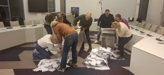 Foto’s van het stemmentellen en een aantal van de stembureaus: