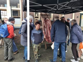 NOORDIJK – De Historische Vereniging Oud Noordijk vierde dat zij op 15 november 2025 voor de 25e keer de traditionele Slachtvisitie organiseerde, ook bekend als Vetpriezen. Eigenlijk zou dat al twee jaar eerder het geval zijn geweest, maar de coronapandemie gooide ook hier roet in het eten. Een van de doelstellingen van de vereniging was het laten herbeleven van oude tradities. In de maand november was het in heel Midden-Europa, van Hongarije tot aan onze streken, namelijk een gebruik om een varken te slachten voor de winterperiode. Daarom werd in oude almanakken deze maand altijd aangeduid als slachtmaand. Een mooie vette zeug werd niet alleen verwerkt tot hammen om te drogen of worsten van te maken, maar er was zoveel meer dat men kon doen voor de koude winterdag.