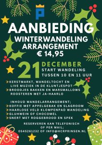 De dag begint tussen 10.00 en 12.00 uur, wanneer deelnemers kunnen genieten van koffie of thee met een stuk appelgebak en slagroom. Dit vormt een heerlijke start voor de bijzondere winterwandeling die volgt. De wandeling van 8 kilometer voert door het idyllische Haarlo en bevat een sfeervolle stop bij de Kluntjespot. Hier kunnen wandelaars genieten van glühwein of warme chocolademelk, terwijl het duo Schoolmatesmusic live muziek verzorgt van 12.00 tot 15.00 uur.
