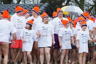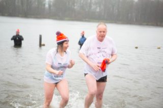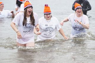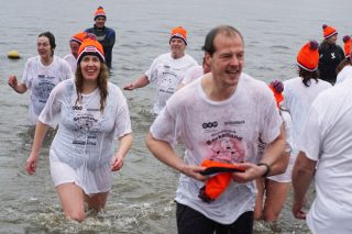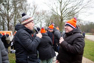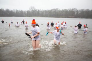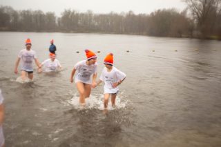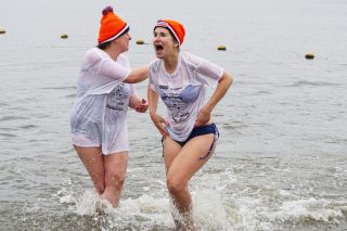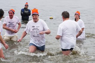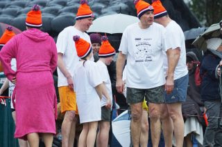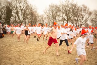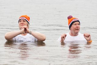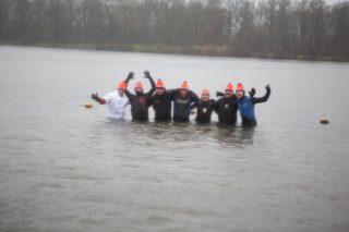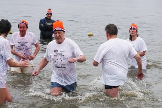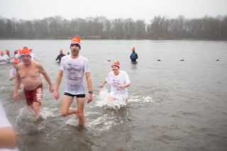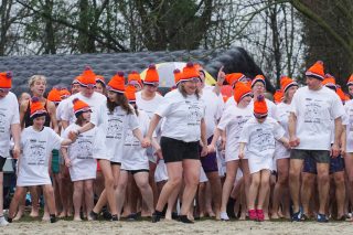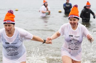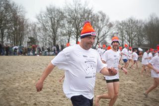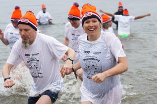 BERKELLAND – Blauwalg, roodalg, een gevoelstempratuur van -3 en regen dat met bakken uit de lucht kwam. Er waren redenen genoeg voor mensen om niet deel te nemen aan de Berkellandse Nieuwjaarsduik in de Meren van Borculo. Ondanks al deze omstandigheden was het deelnemers aantal zeker niet minder dan normaal. “325 deelnemers begonnen 2026 met een frisse duik”. Zo laat de organisatie weten. Vanaf 13.30 uur verzamelden deze bikkels zich voor het strandje bij de volledige vernieuwde omgeving bij recreatie plas. Vanaf dat moment zorgde presentator Bas te Velthuis voor wat vertier, interviews en een warming-up. Burgemeester Joost van Oostrum gaf om klokslag 14.00 uur het startsein. De deelnemers, allemaal gekleed in een speciaal shirt en met een Unox muts op, overwonnen zich zelf door het koude water in te gaan. Na afloop was het snel weer aankleden geblazen en lekker warm worden door een kop snert die werd aangeboden aan alle deelnemers. “Vandaag blijkt maar weer eens dat de Berkellandse Nieuwjaarsduik een verankerde traditie is geworden in onze samenleving”. Zegt Marja Schulenberg, die al vanaf de aller eerste Nieuwjaarsduik in Berkelland betrokken is bij het evenement, na afloop.