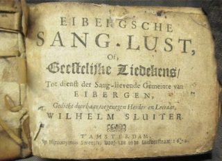 1. Het titelblad van de eerste druk van Willem Sluiters Eibergsche Sang-Lust, uit 1670, in afdeling Bijzondere Collecties van de Amsterdamse  Universiteitsbibliotheek.