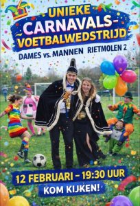 Unieke carnavalsvoetbalwedstrijd in Rietmolen: dames tegen mannen