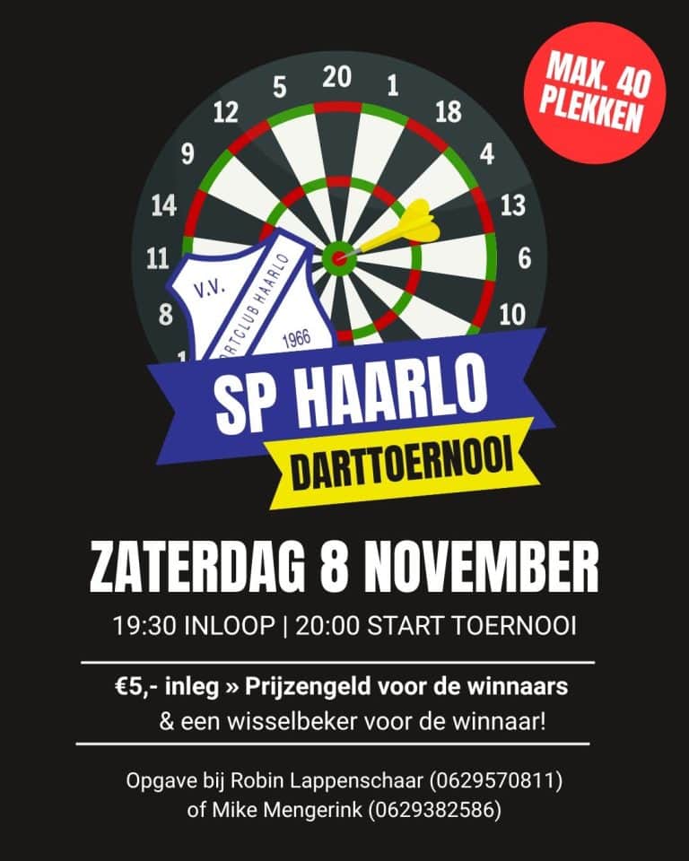HAARLO – Het jaarlijkse darttoernooi komt er weer aan in de kantine van SP Haarlo